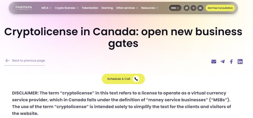 | Manimama | EU, Canada, UAE, Switzerland | Canada MSB, fastest registration category | European crypto projects targeting Canadian market |